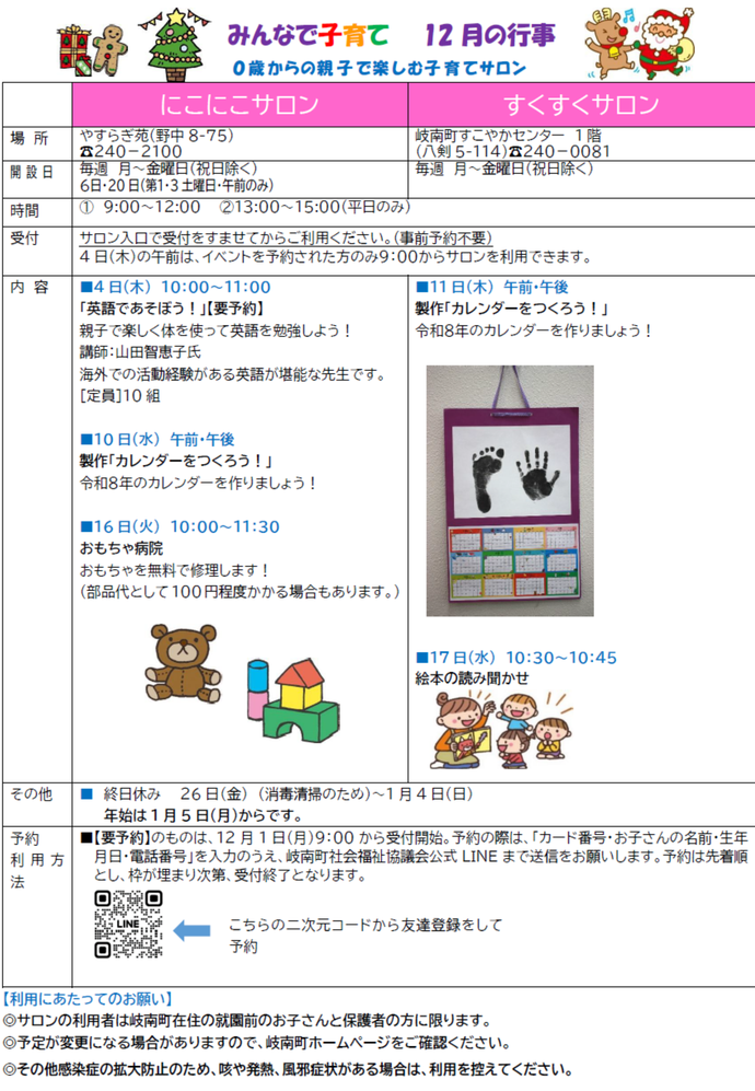 にこにこサロン・すくすくサロンは、岐南町在住の0~3歳未満のお子さんとその保護者さんが参加できる子育てサロンです。